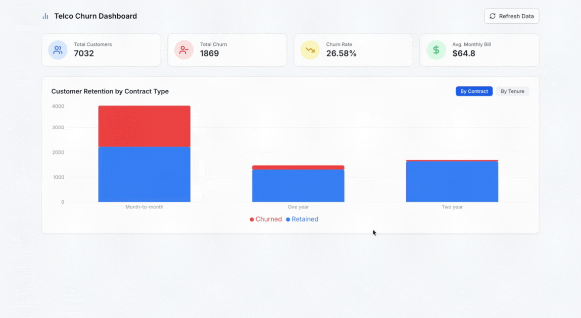 If you want to try this dashboard live, you can do so here on Reflex Build -> Churn Dashboard