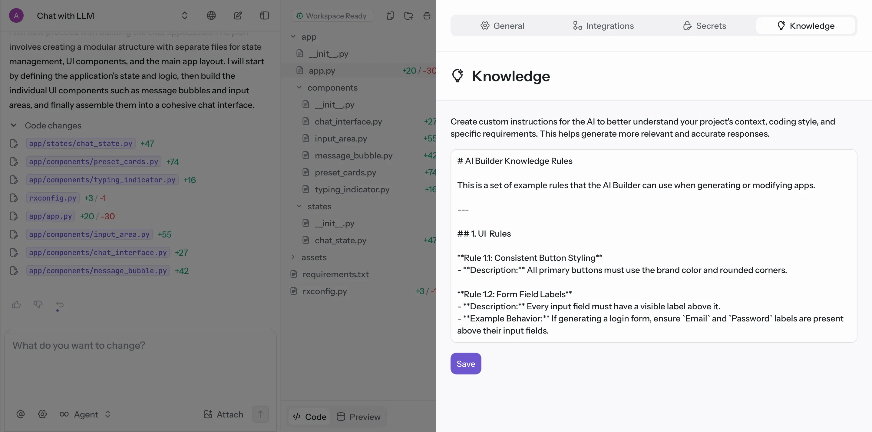 - Quickly Adapt AI Behavior Add or update rules to influence new app generations without manual edits.